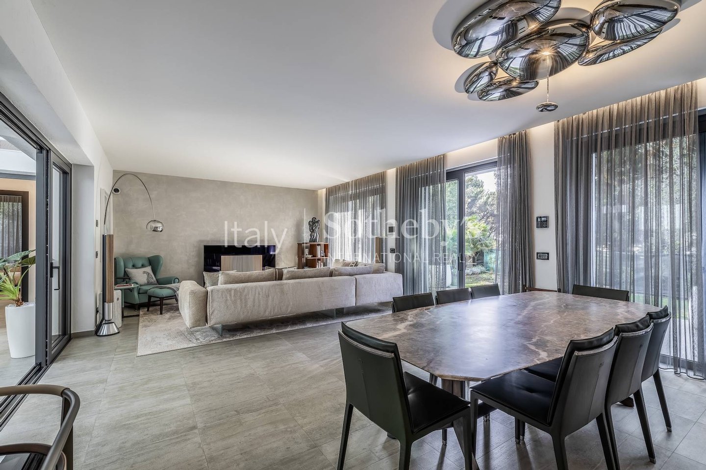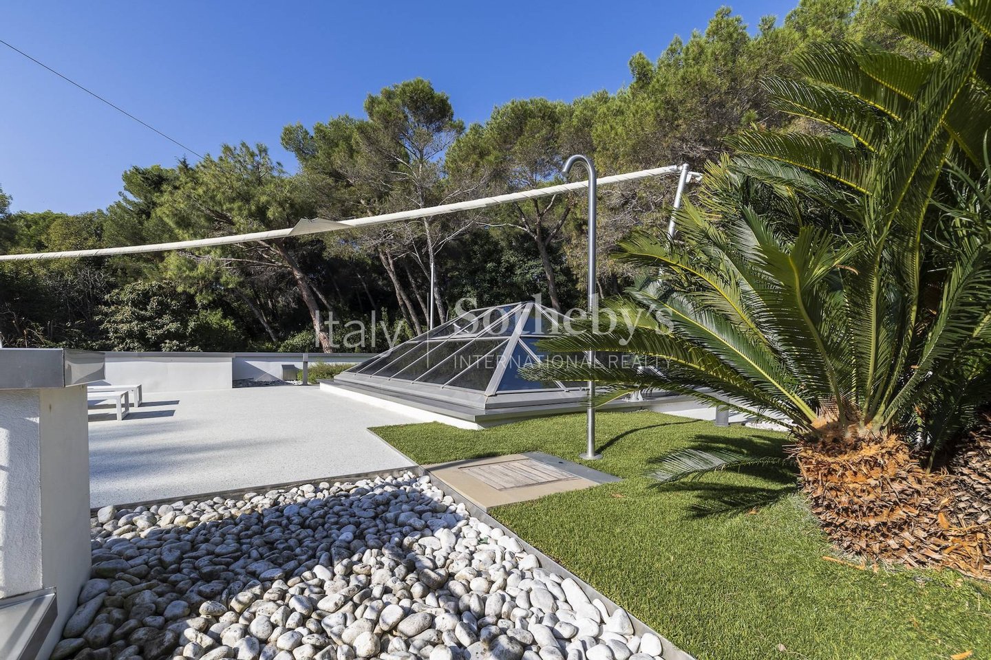 Located in the renowned town of Pinamare, this exclusive villa is immersed in a setting of extraordinary beauty, a few steps from the sea and with privileged connections to Monaco, Nice airport, Genoa and Milan. The villa embodies the best of contempora