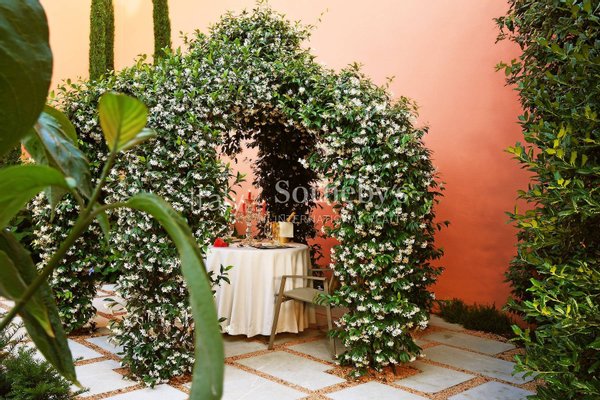 Die Immobilie ist von einem Innenhof umgeben und verfügt über einen Garten mit Sonnenterrasse und Grillbereich. Sie ist mit Alarmanlage, Smart-Home-System, individueller Heizung sowie einem großzügigen Parkplatzbereich für etwa zehn Fahrzeuge in einem zweiten Hof ausgestattet, wobei eine teilweise Überdachung erlaubt ist. Zusätzlich verfügt die Immobilie über Photovoltaik- und Solarthermie-Anlagen, die eine hohe Energieeffizienz gewährleisten.
