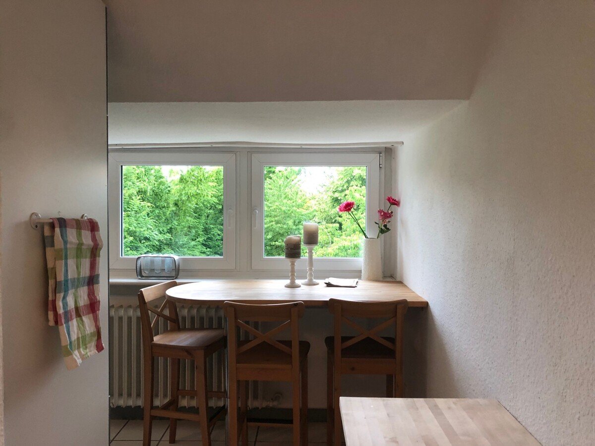 Zur Vermietung steht eine voll möblierte 3-Zimmer-Wohnung im Dachgeschoss eines ruhigen und gepflegten Zweifamilienhauses aus dem Jahr 1952.