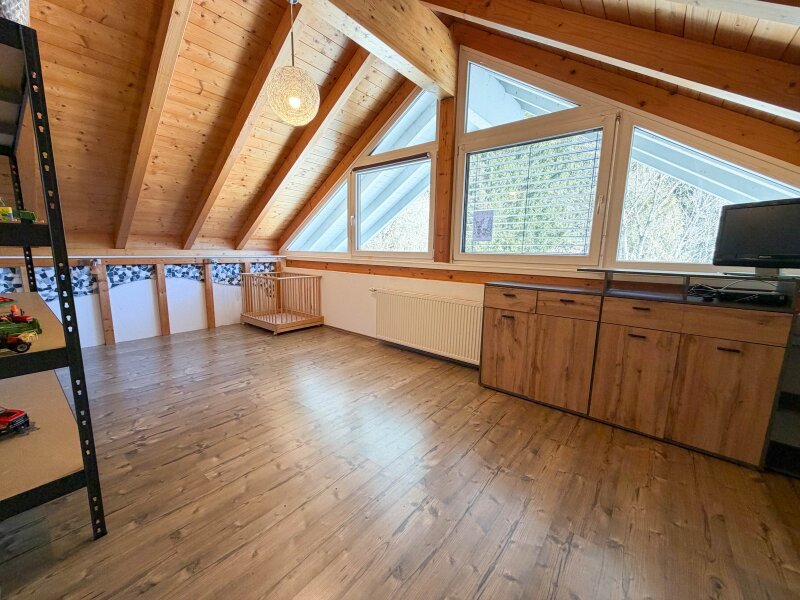 Der eigene Garten bildet eine private Wohlfühloase mit direktem Bezug zur Natur. Die sonnige Ausrichtung und die unmittelbare Waldnähe sorgen für ein besonderes Wohngefühl. Ob entspannte Stunden auf der Terrasse, spielende Kinder im Grünen oder gesellige Grillabende mit Familie und Freunden – dieser Außenbereich bietet Lebensqualität pur.