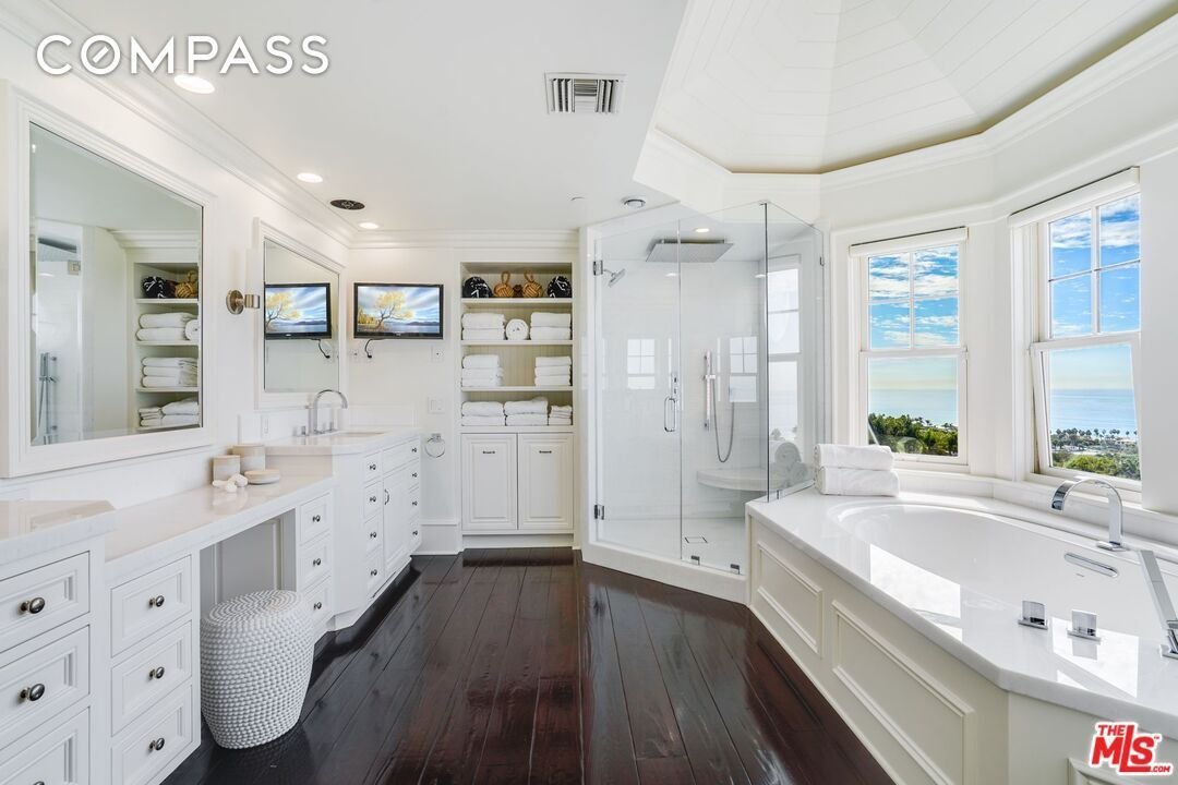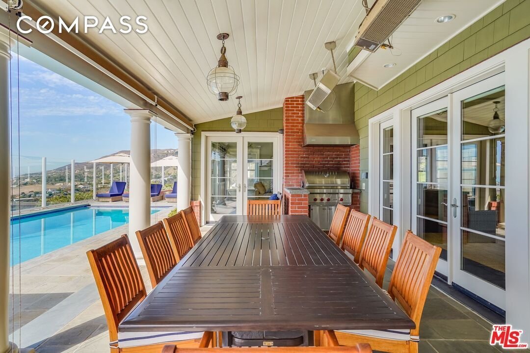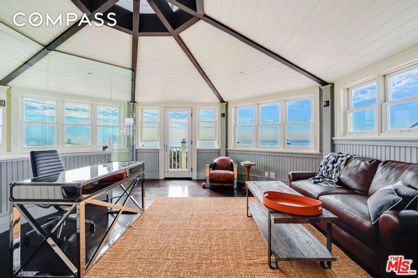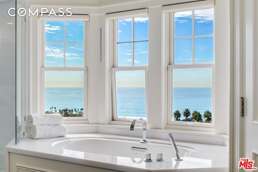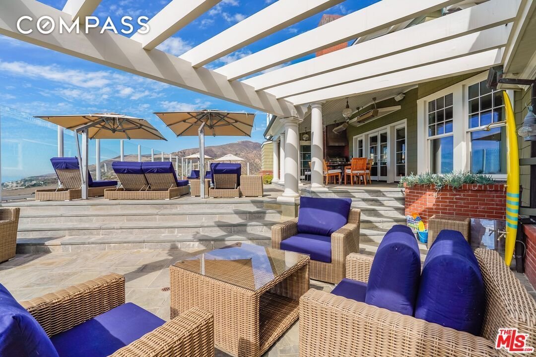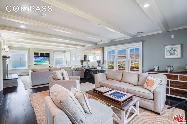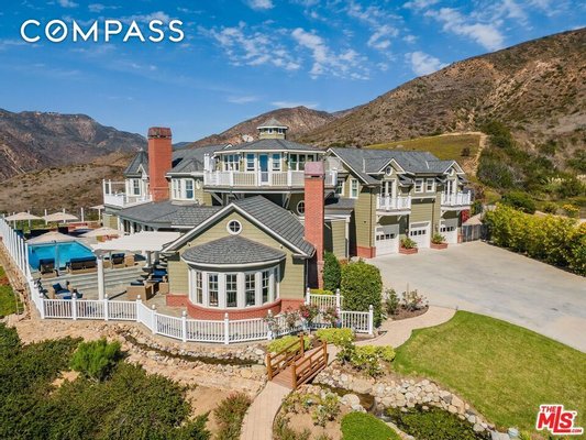 Eingebettet in eine exklusive, bewachte Wohnanlage bietet dieses exquisite Anwesen im Cape-Cod-Stil das Ultimative an Küstenluxus und zurückhaltender Eleganz. Vollständig bewacht und privat bietet das Haus von fast jedem Raum einen Panoramablick auf das Meer und die Berge und ist perfekt für großzügige Unterhaltung und komfortables Alltagsleben gestaltet. Das Haupthaus mit sechs Schlafzimmern und sechs Bädern verfügt durchgehend über Holzböden und einen beeindruckenden Eingang mit einer weitläufigen Treppe. Das formelle Wohnzimmer verfügt über Erkerfenster, einen Kamin und französische Türen, die zu einer Resort-ähnlichen Outdoor-Oase mit einem funkelnden Pool und Spa, einer Feuerstelle und mehreren Sitzbereichen für Unterhaltung führen. Ein formelles Esszimmer mit Kassettendecken aus Holz und eine Gourmet-Küche mit zentraler Insel mit Carrera-Marmorarbeitsplatten und hochwertigen Haushaltsgeräten vervollständigen das Hauptgeschoss. Im Obergeschoss bietet die romantische Hauptsuite einen Kamin, zwei begehbare Kleiderschränke und ein luxuriöses Spa mit Blick auf das Meer. Ein spezieller Zwei-Zimmer- und Kinderflügel sowie ein zusätzliches Schlafzimmer mit eigenem Bad bieten ideale Räume für Familie oder Gäste. Die dramatische Rotunde im vierten Stock eignet sich als atemberaubendes Büro oder Rückzugsort mit Blick auf das Meer. Das untere Stockwerk verfügt über ein vielseitiges fünftes Schlafzimmer oder Fitnessstudio, einen Billardtisch/Spielraum, ein zusätzliches Schlafzimmer sowie einen Waschraum und eine Trockensauna. Weitere Highlights sind eine Drei-Auto-Garage und ein großer Rasengarten, umgeben von alten Bäumen und ein Wanderweg, der sich hinunter zum freistehenden Gästehaus schlängelt. Das separate, freistehende Gästehaus mit umlaufenden Terrassen sowie einer voll ausgestatteten Küche und Waschküche bietet weite Ozeanblicke, die perfekt für Gäste, ein Büro oder Studio geeignet sind. Weite, angelegte Anlagen umfassen einen charmanten Wasserfall, ein sekundäres Solarsystem und einen Generator. Erleben Sie Privatsphäre, Raffinesse und das Beste des Küstenlebens in Malibu in diesem einzigartigen Anwesen. Auch zu vermieten