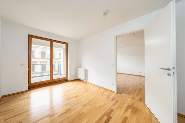 Das Schlafzimmer bietet ausreichend Stellfläche für ein Doppelbett sowie einen großen Kleiderschrank und gewährt direkten Zugang zum privaten Balkon – der ideale Ort für den Morgenkaffee. Das innenliegende Badezimmer ist funktional ausgestattet und verfügt über eine Badewanne.
