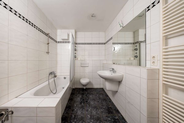 +Badezimmer: Gepflegtes Wannenbad mit ausreichend Platz für Badmöbel.