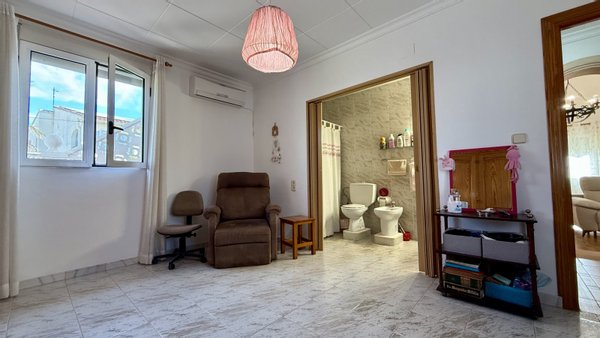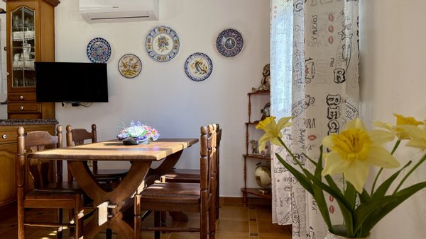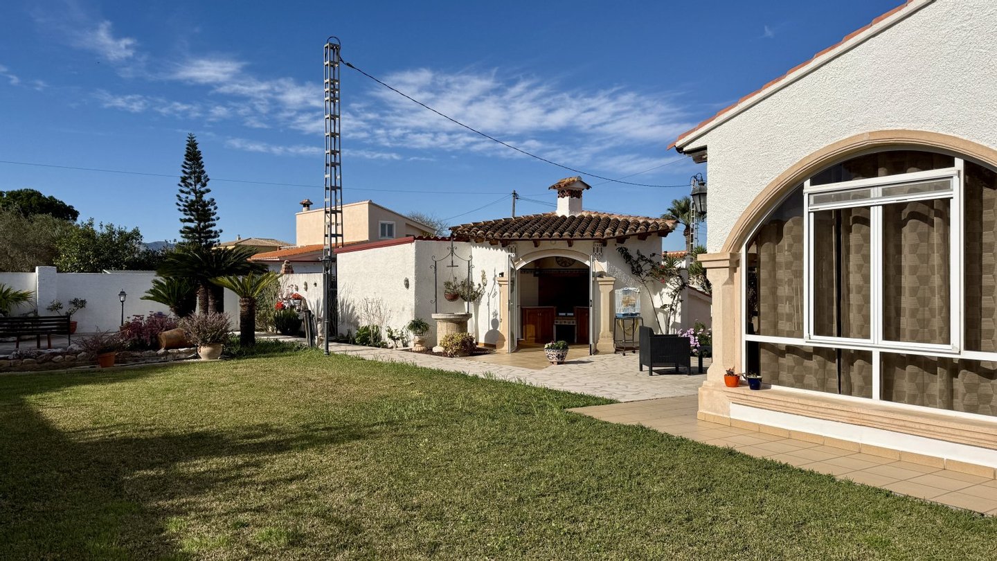 Diese charmante Villa befindet sich nur 400 Meter vom Strand Les Deveses entfernt, in ruhiger Lage zwischen Dénia und Oliva, in fußläufiger Entfernung zu Restaurants, öffentlichen Verkehrsmitteln und dem Radweg nach Dénia. Die Immobilie verfügt über 3 Schlafzimmer und 2 Duschbäder. Das Hauptschlafzimmer befindet sich im Erdgeschoss und verfügt über ein eigenes Duschbad. Im Obergeschoss befinden sich zwei weitere Schlafzimmer: ein Dachgeschoss-Schlafzimmer, das über eine interne Wendeltreppe erreichbar ist, sowie ein drittes Schlafzimmer, das entweder über das Dachgeschoss oder über eine separate Außentreppe zugänglich ist. Helle Räume, sichtbare Holzbalken und ein gemütliches Wohnzimmer mit Pelletofen verleihen dem Haus besonderen Charakter.