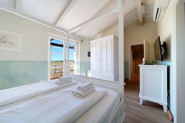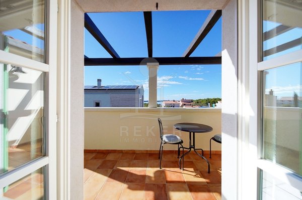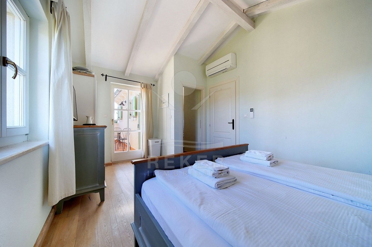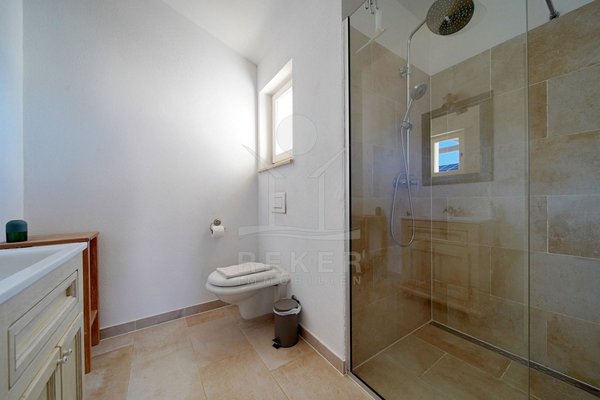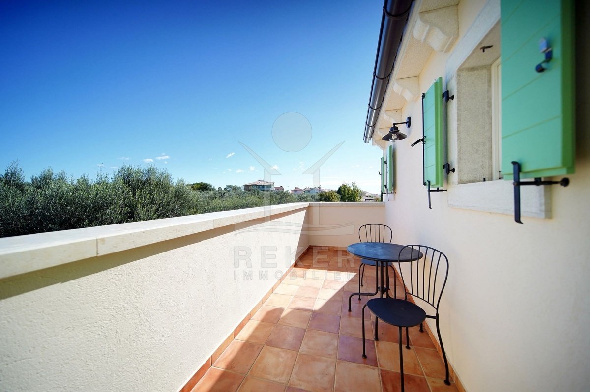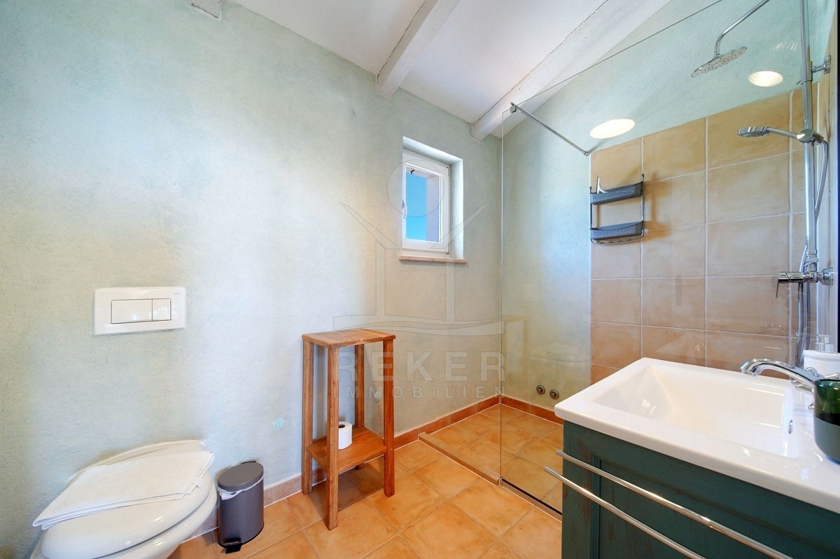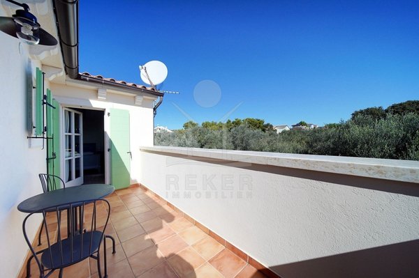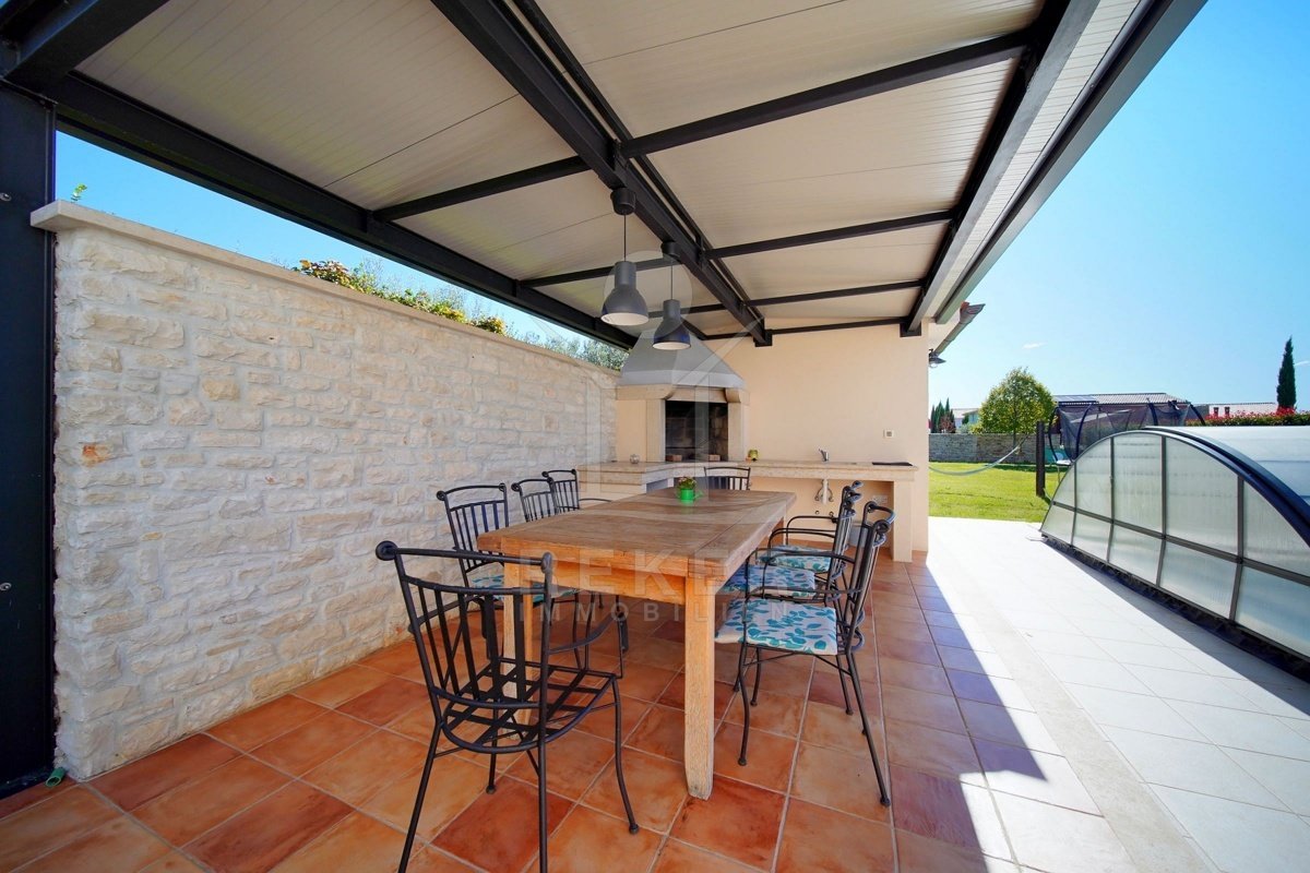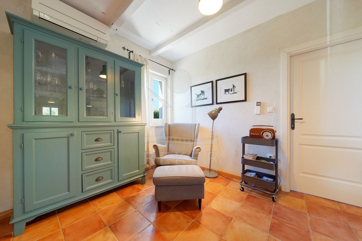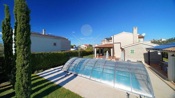 In einem ruhigen Wohnbereich von Fažana, nur rund 600 Meter vom Meer und Strand entfernt, steht diese 2014 erbaute Villa im traditionellen Stil. Sie wohnen angenehm nah an der Küste. Einkaufsmöglichkeiten, Restaurants und Einrichtungen des täglichen Bedarfs erreichen Sie schnell. Die Autobahnauffahrt Vodnjan ist etwa 6 Kilometer entfernt, der Flughafen Pula rund 14 Kilometer. Auf dem Grundstück innerhalb der Bauzone parken Sie drei Fahrzeuge auf eigenem Grund. Ein motorisiertes Einfahrtstor sorgt für zusätzlichen Komfort.