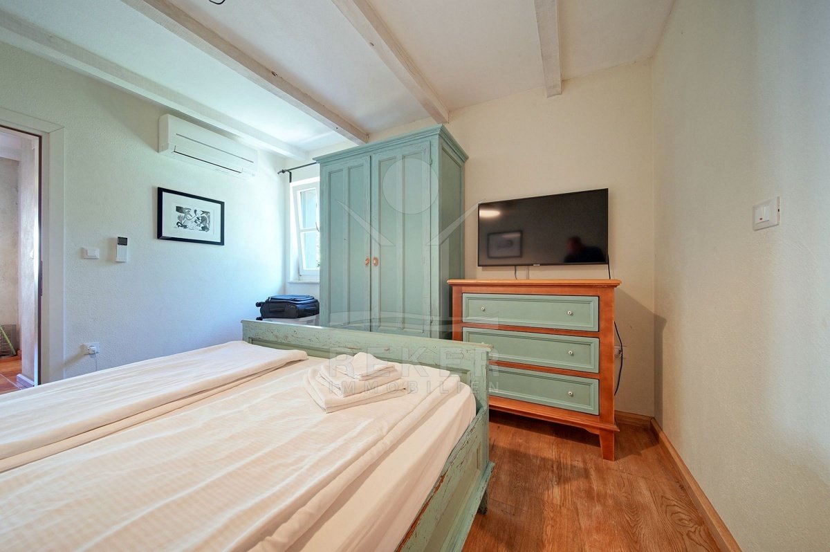 In einem ruhigen Wohnbereich von Fažana, nur rund 600 Meter vom Meer und Strand entfernt, steht diese 2014 erbaute Villa im traditionellen Stil. Sie wohnen angenehm nah an der Küste. Einkaufsmöglichkeiten, Restaurants und Einrichtungen des täglichen