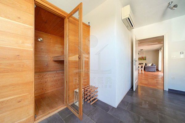 Vier Schlafzimmer mit jeweils eigenem Bad sorgen für Privatsphäre im Alltag oder bei Gästen. Fußbodenheizung, Wärmepumpe, Solarkollektoren und Klimaanlage garantieren angenehmes Wohnen zu jeder Jahreszeit. Dazu eine Sauna im Erdgeschoss … Entspannung