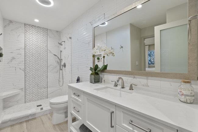 Erleben Sie das schönste Zuhause in den prestigeträchtigen, geschlossenen Villen von Almaden - ein umfassend renoviertes, 2.334 m² großes Stadthaus mit luxuriösen Upgrades im Wert von über 500.000 US-Dollar. Vor der atemberaubenden Kulisse der Innenstadt von San Jose und der East Foothills bietet diese Residenz eine unvergleichliche Aussicht, Gelassenheit, Stil und Raffinesse. Der 2019 genehmigte Umbau berührt jeden Zentimeter: hohe Decken, Designerbeleuchtung, elegante Fußböden und weitläufige Aussichtsdecks. Die Küche des Küchenchefs verfügt über hochwertige Geräte, eine Insel, Quarz-Arbeitsplatten im Marmorstil, Glasschränke und einen Barbereich mit Weinkühlschrank. Ein gemütlicher Gaskamin und eine individuelle Beleuchtung werten das Wohn- und Esszimmer auf. Die Spa-ähnliche Hauptsuite verfügt über einen Kamin, motorisierte Verdunkelungsrollos, Einbauschränke und ein luxuriöses Bad mit Marmordusche und Badewanne. Zwei geräumige zweite Schlafzimmer teilen sich ein modernisiertes Bad, während eine maßgeschneiderte Waschküche ein Waschbecken, Schränke und eine hochwertige Waschmaschine/Trockner umfasst. Energieeffizienz und gesundes Wohnen glänzen mit Solarenergie, gesunder Isolierung, Klimaanlage, einem Ventilator für das ganze Haus und einem Wasseraufbereitungssystem. Mit einer fertigen Garage, mehreren zusätzlichen Abstellflächen und dem Potenzial für eine Erweiterung unter dem Haus ist dies wirklich das Kronjuwel der Gemeinde. Ein gehobener Lebensstil erwartet Sie in diesem unvergleichlichen Rückzugsort in Almaden!