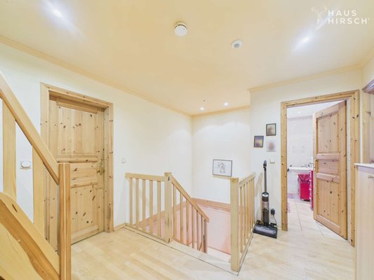 Das Hauptwohnhaus besticht mit einer großzügigen Wohnfläche von ca. 170 m² auf 5 Zimmern, 2 Bädern und 2 Gäste-WCs. Hier finden Sie ausreichend Platz für die ganze Familie und Ihre Gäste.