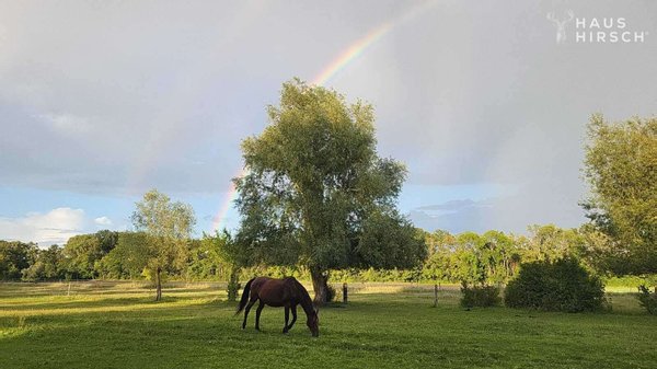 Willkommen auf unserem malerischen Pferdehof für die ganze Familie! Hier erwartet Sie ein großes Wohnhaus mit viel Platz für gemütliches Familienleben. Das kleine Wohnhaus auf dem Anwesen ist aktuell vermietet und bietet eine romantische