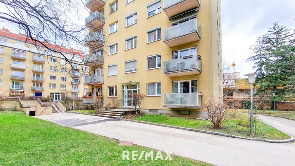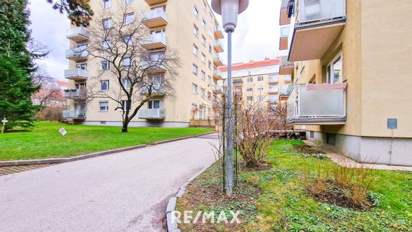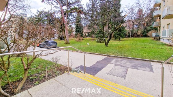 Die Wohnung befindet sich abseits der Straße in einer schönen und sehr gepflegten Wohnhausanlage, die inmitten eines idyllischen, privaten Parks mit großen Bäumen und grünen Wiesen liegt.