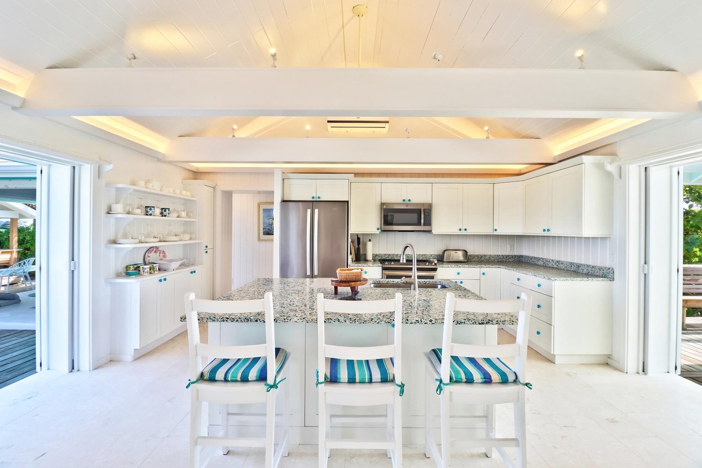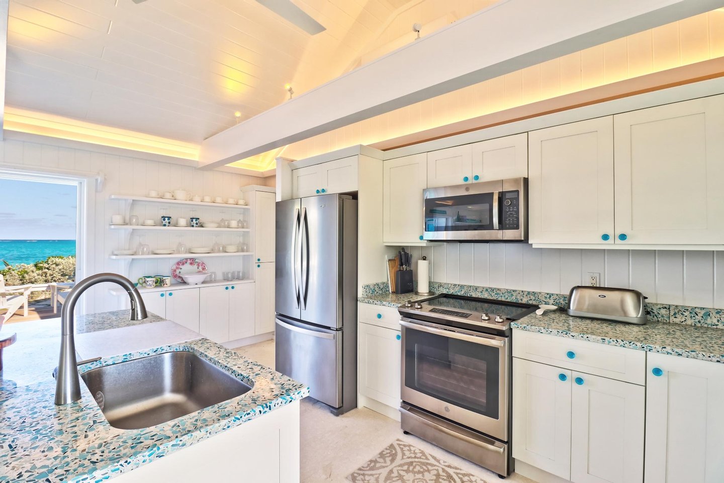 Berry Patch ist das Inselleben in seiner besten Form, ein seltenes, von Meer zu Meer-Küsten-Anwesen auf Man-O-War Cay, mit dem Atlantischen Ozean auf der einen Seite und dem Strand und dem Liegeplatz am Meer von Abaco auf der anderen. Das Grundstück liegt auf einem 1.652 Quadratfuß großen Hochgrundstück, ist durch eine durchgehende Seemauer entlang der Atlantikküste geschützt und bietet weite Ausblicke auf offenes Meer. Die Residenz verfügt über zwei Schlafzimmer und zwei Badezimmer sowie eine offene Wohn-, Speise- und Küchenaufteilung, die sowohl geräumig als auch mühelos elegant wirkt und klassische Inselarchitektur sowie Handwerkskunst präsentiert. Weitläufige Veranden sowohl am Ozean als auch an der Bucht rahmen einen panoramischen Blick auf das Wasser – sie bieten unvergessliche Sonnenaufgänge über dem Atlantik und leuchtende Sonnenuntergänge über dem Abaco-See. Berry Patch verfügt über einen 70 Fuß langen privaten Steg und einen 24.000 Pfund schweren Bootslift, der sofortigen Zugang zu geschützten Kreuzfahrtgewässern und offenem Meer bietet. Selten vereint ein Man-O-War Cay-Anwesen dieses Maß an Höhenlage, Schutz und Doppelleben am Wasser.