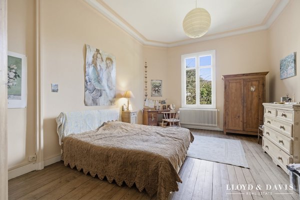 Lloyd & Davis presents this magnificent mansion in the heart of the St-Seurin district. A majestic entrance leads to three beautiful reception rooms of more than 100m2. Fireplaces, solid parquet flooring, stained glass, high ceilings and exceptional moldings are appreciated at their true value in this timeless house. The living room and the charming independent kitchen open onto a beautiful stone terrace overlooking a very large garden of more than 300m² out of sight. On the first floor, 4 beautiful bright bedrooms with a fireplace and an opening onto a balcony for two of them. Two shower rooms, a bathroom and a linen room complete this floor. The second floor has 5 more modest-sized bedrooms and an attic. The house also has a large cellar. A refreshment would make it possible to sublimate this exceptional property. A large garage with 3 parking spaces can be sold as an add-on. Renowned schools, shops and transport are within walking distance. A peaceful setting, a rare address to shape in your image in one of the most coveted locations in Bordeaux. Agency fees to be paid by the seller. Energy class D, Climate class C Estimated amount of annual energy expenditure for standard use: between €5760.00 and €6526.00 over the years 2021, 2022 and 2023 (subscriptions included). Information on the risks to which this property is exposed is available on the Géorisques website: georisques.gouv.fr. Your LLOYD & DAVIS advisor: Sophie BOURGEOIS Commercial Agent (Sole Proprietorship) RSAC 934 373 598 Bordeaux RCP B1532 CA2400005 Apivia Courtage
