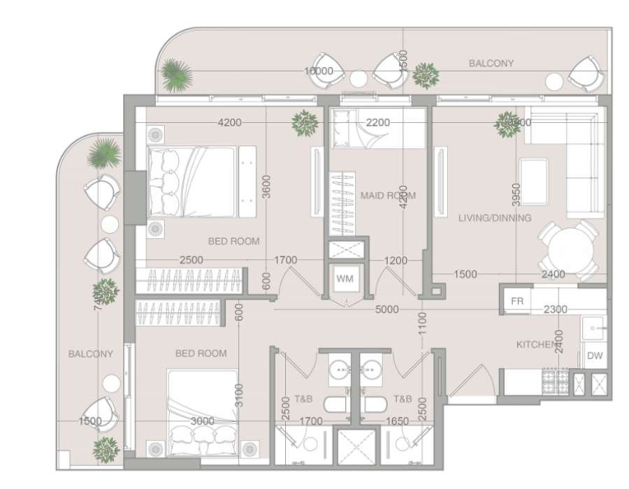 Wohnung mit zwei Schlafzimmern und Dienstmädchenzimmer