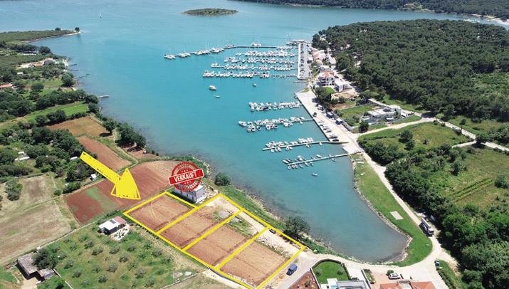 Als eines von 4 nebeneinanderliegenden Grundstücke bietet es einen atemberaubenden Blick über die Adria und liegt direkt an der Wasserfront.