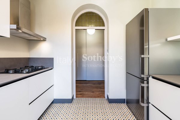 Die Wohnung wurde sorgfältig restauriert, wobei jeder Raum durch hochwertige Ausstattungen - darunter edle Parkettböden - aufgewertet wurde. Hohe Decken und architektonische Details wurden bewahrt und harmonisch mit modernen Anlagen und technologischen Lösungen der neuesten Generation kombiniert.