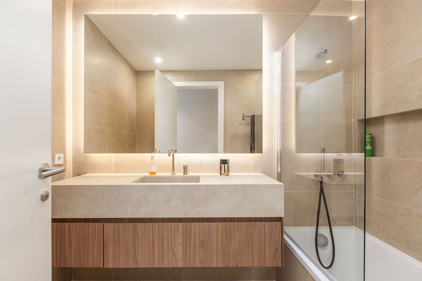 Dieses helle Apartment befindet sich in einem innovativen Neubauprojekt im trendigen Stadtviertel Son Dameto. Das Design kombiniert natürliche Materialien wie Beton, Stein und Glas zu einem harmonischen Gesamtkonzept, das modernen Wohnstil mit