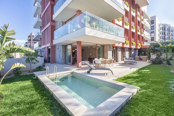 Stilvolles Gartenapartment mit Pool in innovativer Wohnanlage