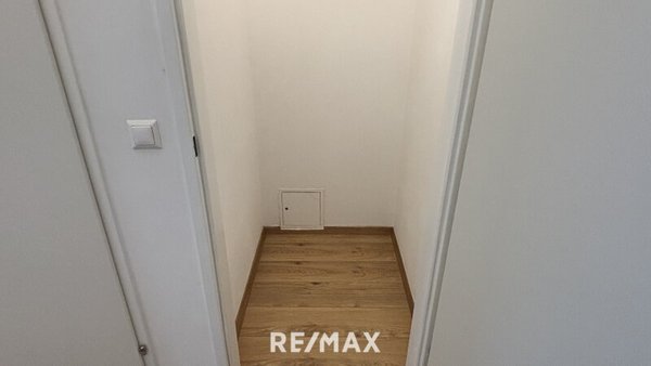 Das Badezimmer ist mit einer Dusche ausgestattet, während das WC separat gehalten ist. Ein praktischer Abstellraum ergänzt die Wohnung und sorgt für zusätzlichen Stauraum.