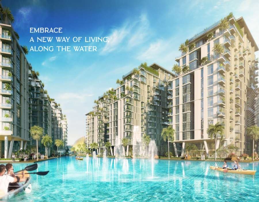 Inspiriert von venezianischen Kanälen und zentriert um eine kristallene Lagune bietet es moderne, zum Wasser hin gelegene Wohnungen mit privaten Balkonen, eine Fußgängerpromenade, strandähnliche Freizeitbereiche und eine Mischung aus