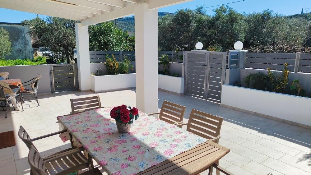 Umgeben von Olivenbäumen bietet das Haus eine ruhige und private Atmosphäre. Draußen lädt ein schattiger Essbereich mit gemauertem Grill und Spülbecken zum Entspannen oder für gesellige Stunden ein.