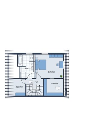 Im Dachgeschoss ist ein großes Schlafzimmer mit einen Ankleidezimmer mit einem großzügigen Bad vorhanden Das Bad ist mit Badewanne ,begehbarer Dusche, Doppelwaschtisch , WC und Handtuchwärmer ausgestattet und über ein Fenster belichtet und belüftet.