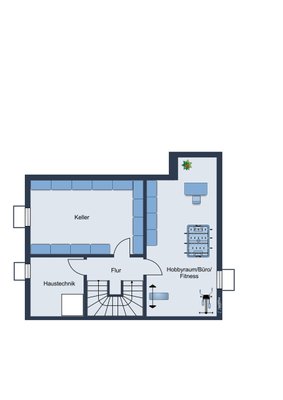 Im Kellergeschoss befindet sich ein großzügiger Hobbyraum, der durch einen Lichtschacht und ein großes Fenster natürlich belichtet ist. Der Hobbyraum wurde bei der Wohnfläche zu 50 Prozent in Anrechnung gebracht.
