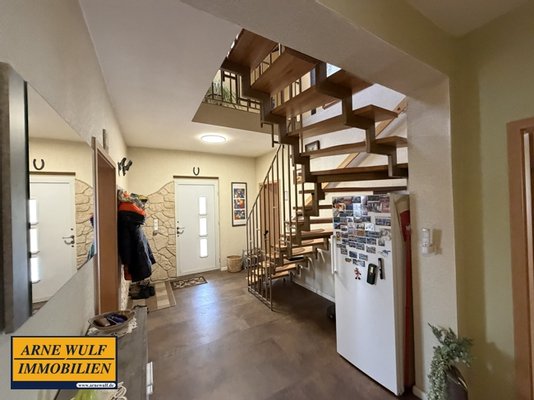 Das großzügige Einfamilienhaus befindet sich auf einem äußerst idyllisch angelegten Grundstück, mit einer Fläche von ca. 2.661 m², in ruhiger Lage der Gemeinde Blumenholz. Das Haus wurde etwa im Jahr 2003 als Familienhaus in massiver Bauweise errichtet und bietet viel Platz sowie einen herrlichen Blick in die umliegende Natur mit Feldern und Wiesen. Im Erdgeschoss mit einer Wohnfläche von ca. 100 m² befinden sich ein sehr großzügiger Wohn- und Essbereich, eine Küche, ein Wannenbad, ein separates WC, eine Diele, die zugleich als Treppenhaus dient, sowie ein Hauswirtschaftsraum. Vom Wohnbereich aus eröffnet sich ein wunderschöner Blick in den Garten und die angrenzende Landschaft. Ein Kamin sorgt zusätzlich für eine angenehme Wärme und eine gemütliche Wohnatmosphäre.