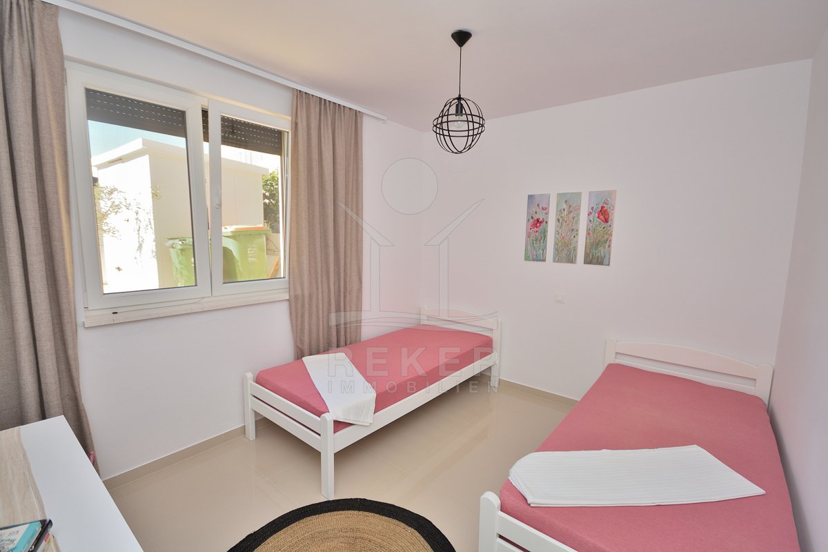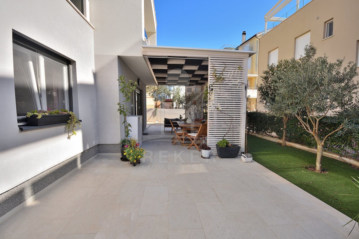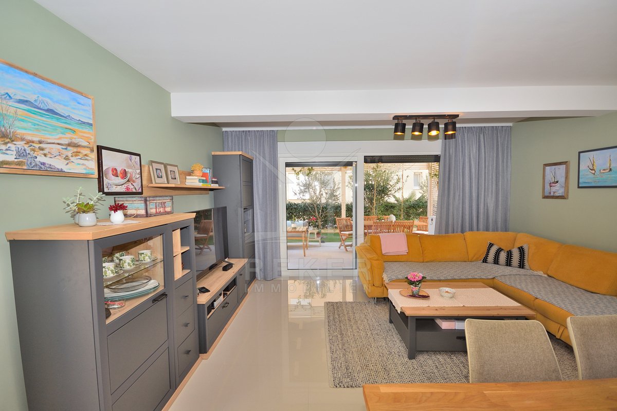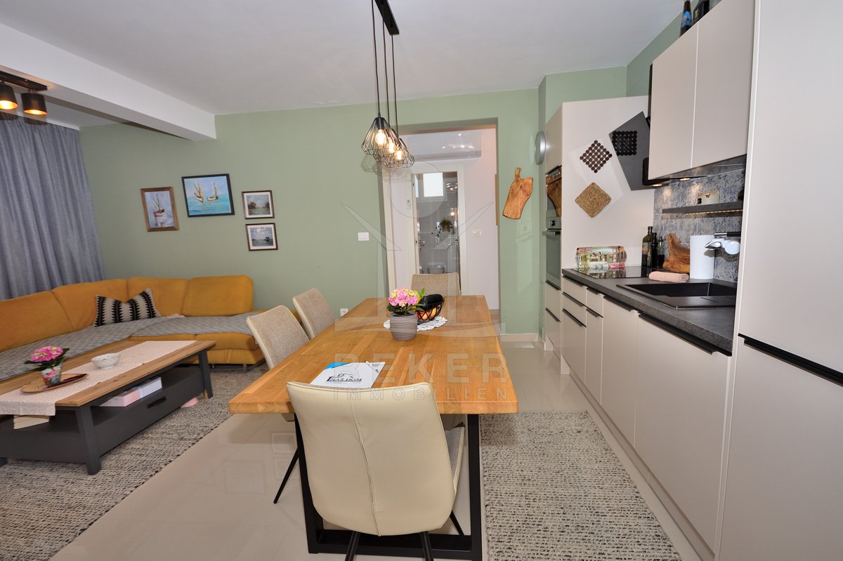 Großer Garten, strandnahe Lage und vollständige Möblierung … Diese Kombination ist in Vodice gefragt. Mit drei Schlafzimmern, zwei Bädern und 108,43 m² Gesamtnutzfläche bietet die Wohnung Substanz. Parkplatz, Kellerraum und ruhige Lage runden das Gesamtpaket ab.