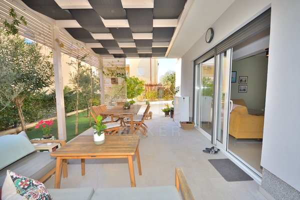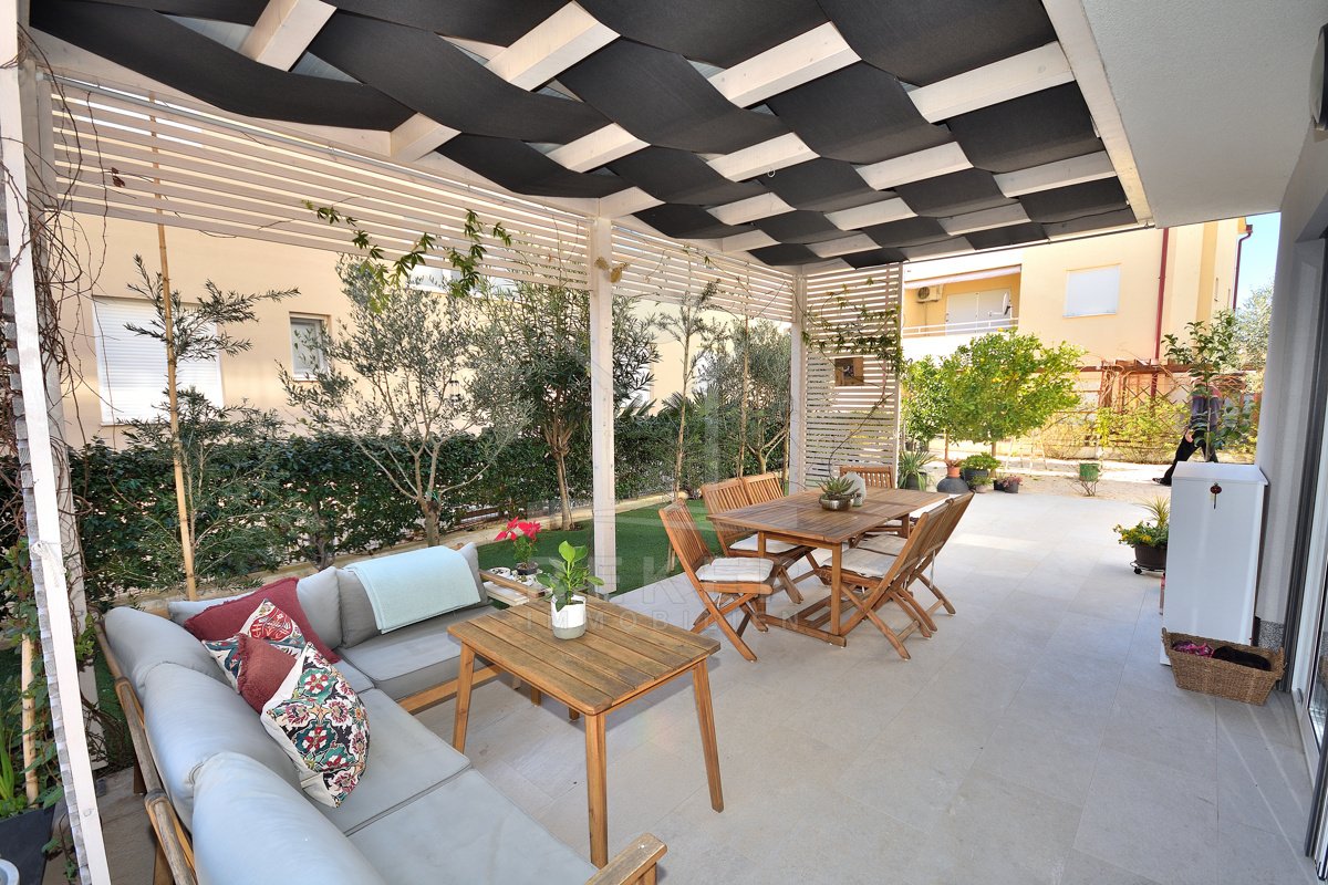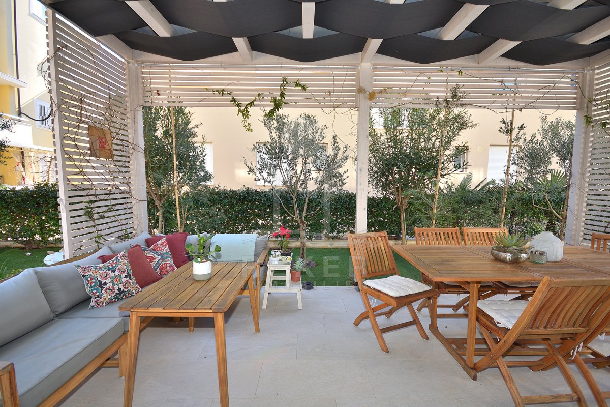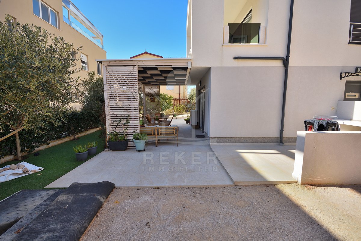 Großer Garten, strandnahe Lage und vollständige Möblierung … Diese Kombination ist in Vodice gefragt. Mit drei Schlafzimmern, zwei Bädern und 108,43 m² Gesamtnutzfläche bietet die Wohnung Substanz. Parkplatz, Kellerraum und ruhige Lage runden das Gesamtpaket ab.