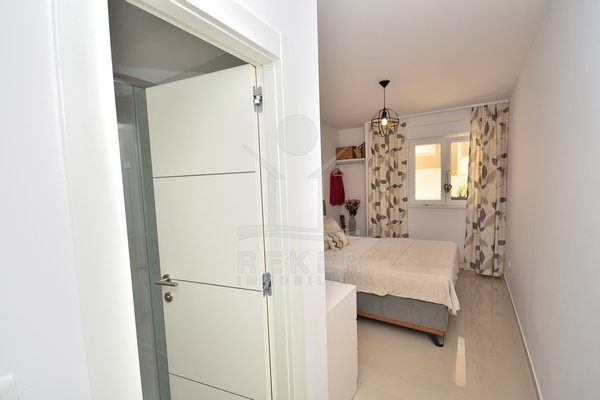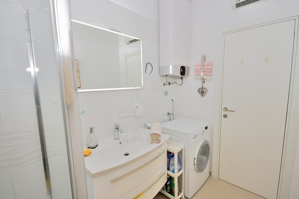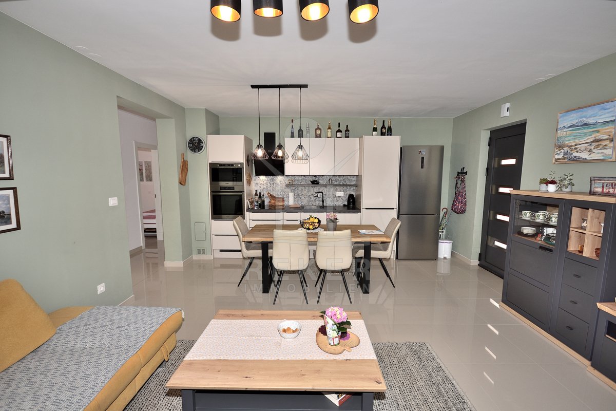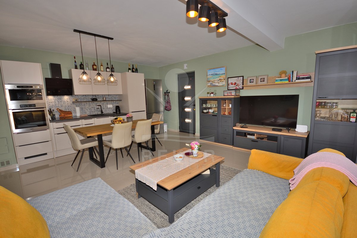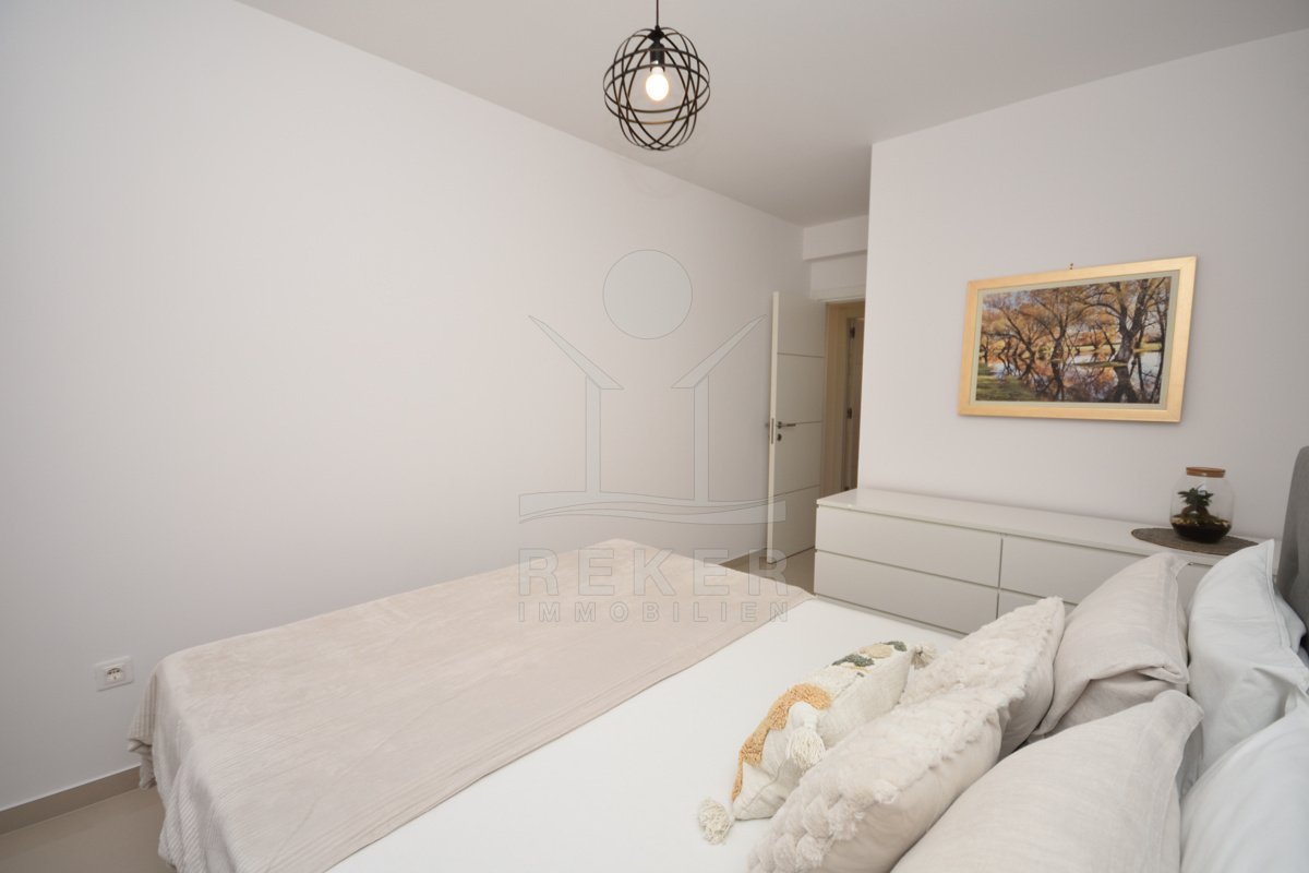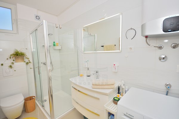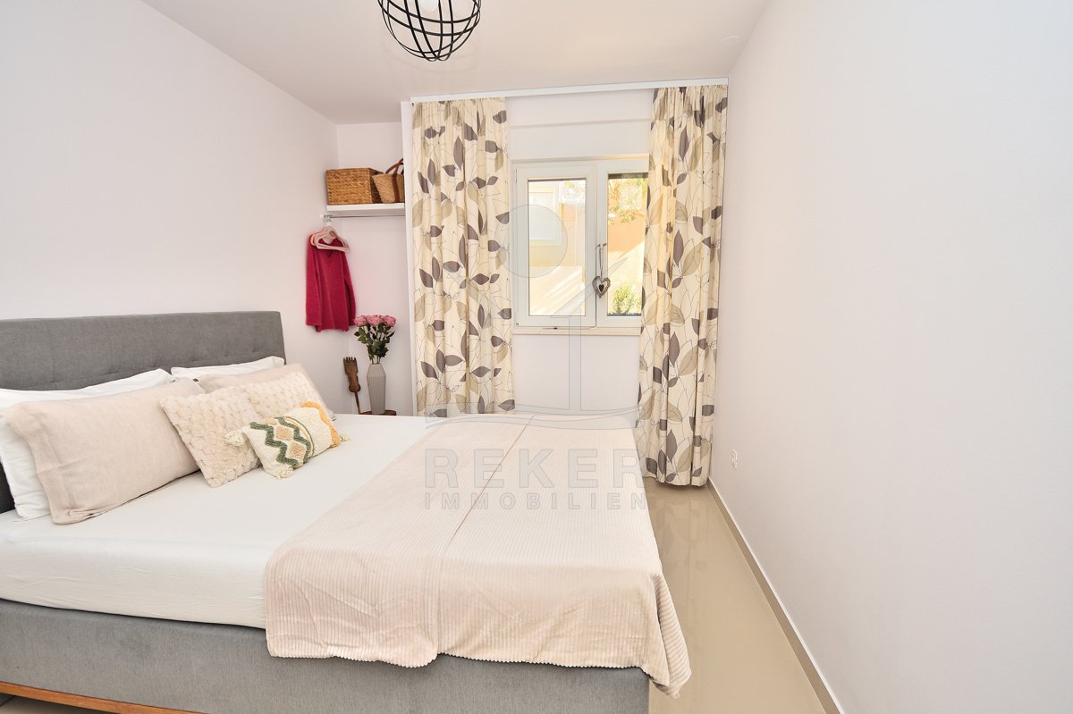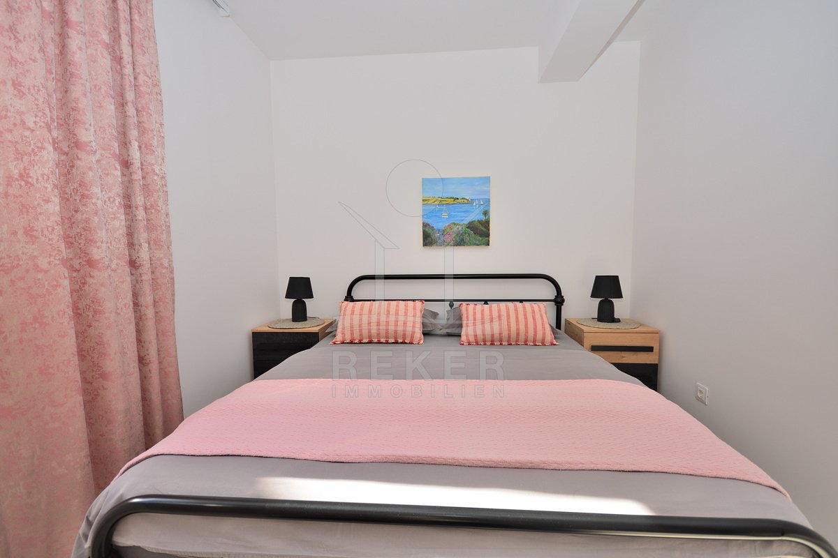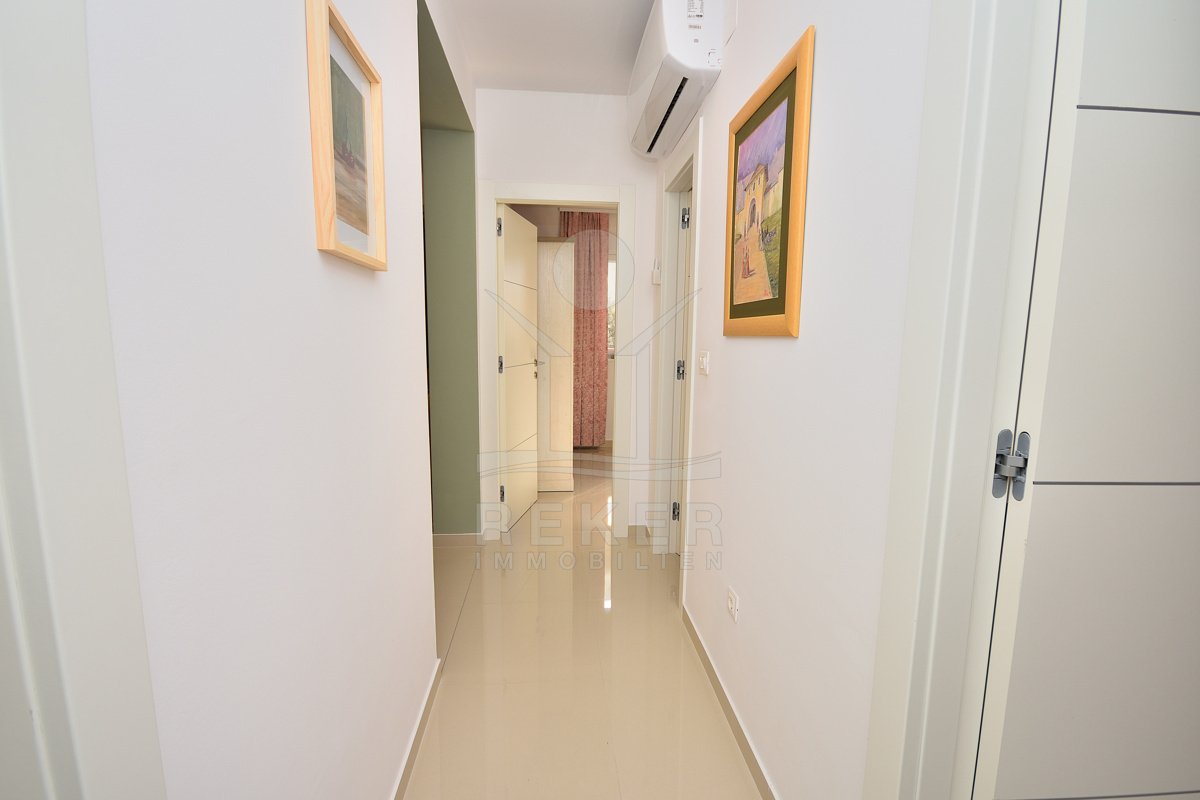 In einem ruhigen, gepflegten Teil von Vodice, nur 500 Meter vom Strand und rund 1.100 Meter vom Zentrum entfernt, erwartet Sie diese komplett möblierte Wohnung aus dem Jahr 2021. Die südwestliche Ausrichtung bringt viel Sonne in die Räume und schafft eine freundliche Atmosphäre. Ihren Parkplatz mit 12,91 m² nutzen Sie direkt am Gebäude. Zusätzlich steht Ihnen ein Kellerraum mit 4,30 m² zur Verfügung. Praktisch für alles, was Sie verstauen möchten.