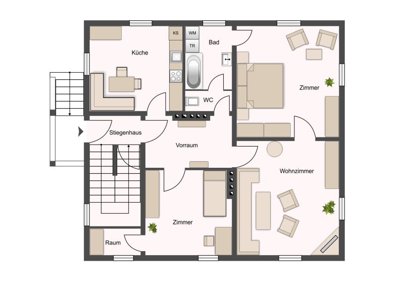 Drei separat nutzbare Bereiche eröffnen Ihnen flexible Gestaltungsmöglichkeiten – sei es für Mehrgenerationenwohnen, für Freunde, die oft zu Besuch sind, oder als lukrative Vermietung.