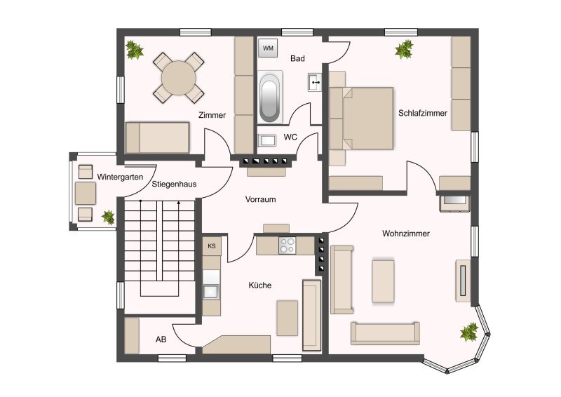 Drei separat nutzbare Bereiche eröffnen Ihnen flexible Gestaltungsmöglichkeiten – sei es für Mehrgenerationenwohnen, für Freunde, die oft zu Besuch sind, oder als lukrative Vermietung.