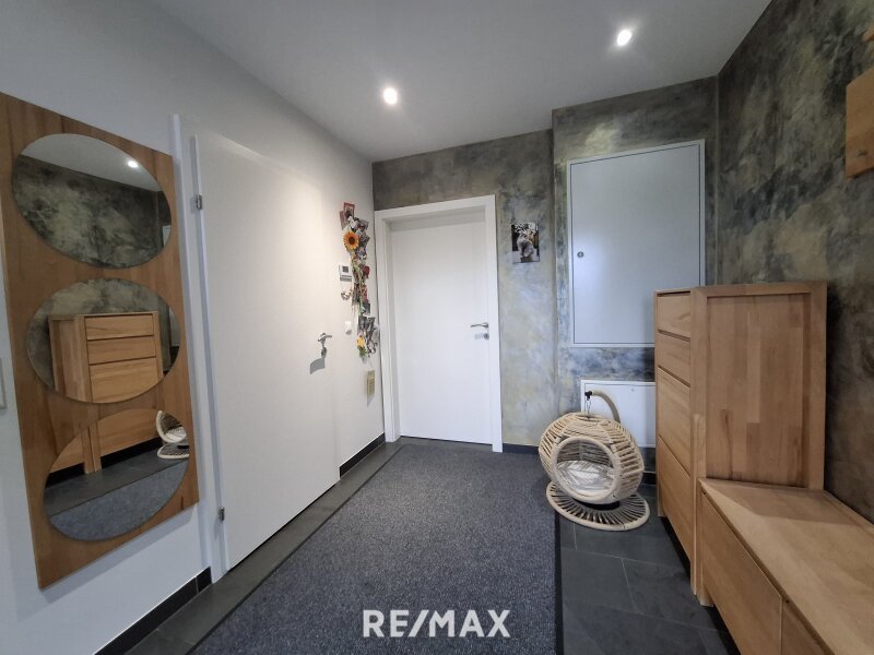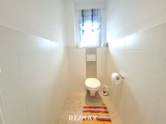 Im Eingangsbereich begrüßt Sie ein geräumiger Vorraum mit direktem Zugang zur Garage. Ebenfalls vom Vorraum aus erreichbar ist ein separates, großzügiges WC mit Waschbecken.