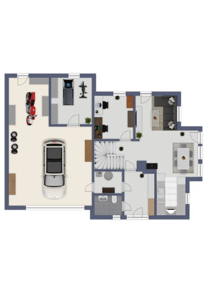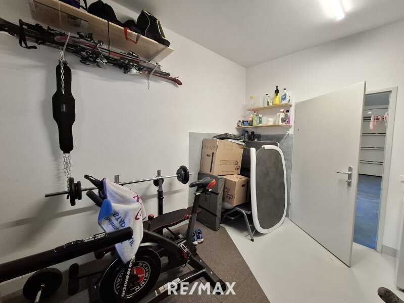 Das Haus verfügt über eine praktische Doppelgarage mit angrenzendem Fitnessraum und direktem Zugang zum Wohnbereich. In der Garage ist ausreichend Platz für zwei Autos sowie zusätzlichen Stauraum vorhanden.