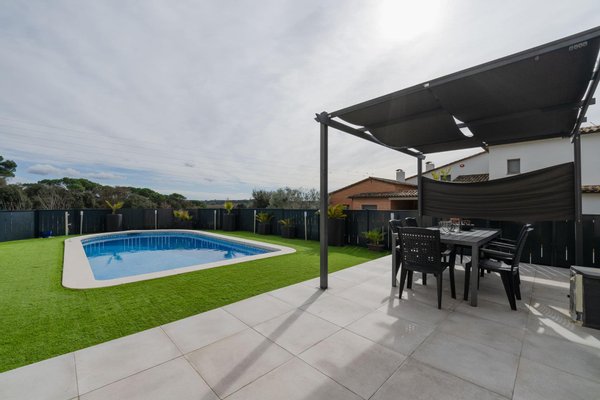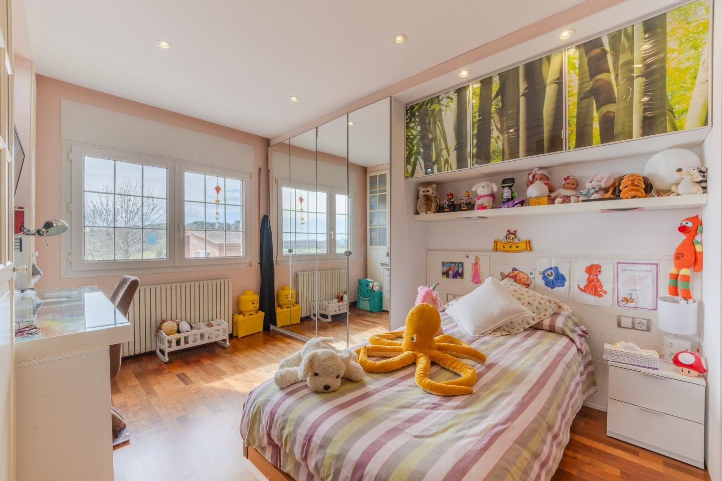 The exterior is a true private retreat designed for enjoyment: from summer afternoons by the pool to leisurely dinners on the porch with a barbecue and wood-fired oven, all with the serenity of unobstructed views that dominate the surrounding landscape. Elegant finishes, such as warm wood floors in the bedrooms and large-format tiles in the kitchen, are combined with practical details like mosquito nets on all windows. This is a house with soul, where the spaciousness of its suites and the functionality of its large 4-car garage offer the ultimate in quality of life in Girona's most sought-after area.