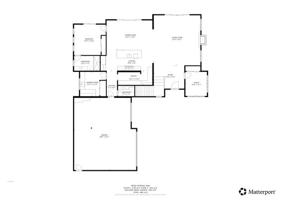 Also on the main floor are a private office and an additional bedroom, offering flexibility for guests or work-from-home needs. A spacious laundry room connects directly to the oversized three-car garage, enhancing daily function.