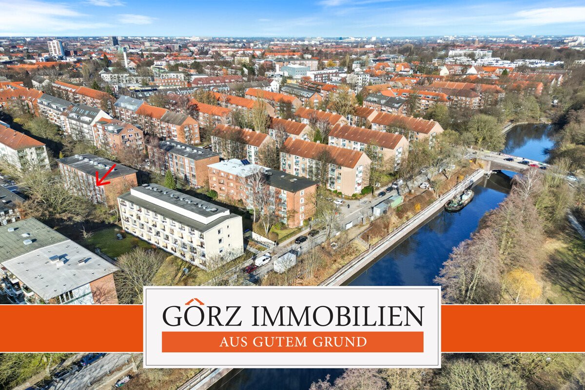 Die angebotene Wohnung befindet sich im beliebten Hamburger Stadtteil Barmbek-Süd und überzeugt durch ihre attraktive Lage in unmittelbarer Nähe zum Wasser. Der idyllische Eilbekkanal ist in nur ca. drei Gehminuten erreichbar und bietet ideale