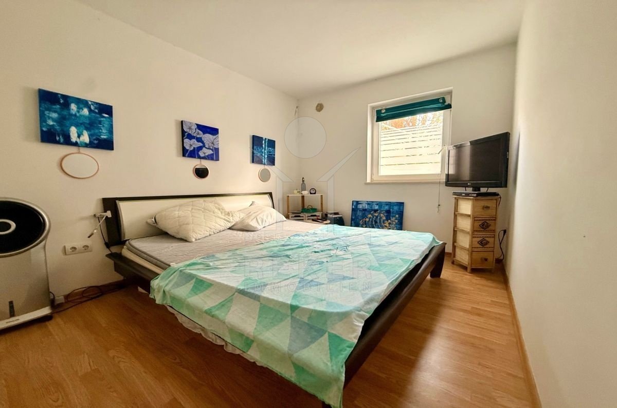 Die möblierte Erdgeschosswohnung bietet rund 52 m² Wohnfläche sowie eine großzügige Gartenfläche von 142 m². Zwei Schlafzimmer, ein Wohnzimmer mit Küche und Essbereich sowie eine Terrasse schaffen eine praktische Raumaufteilung.