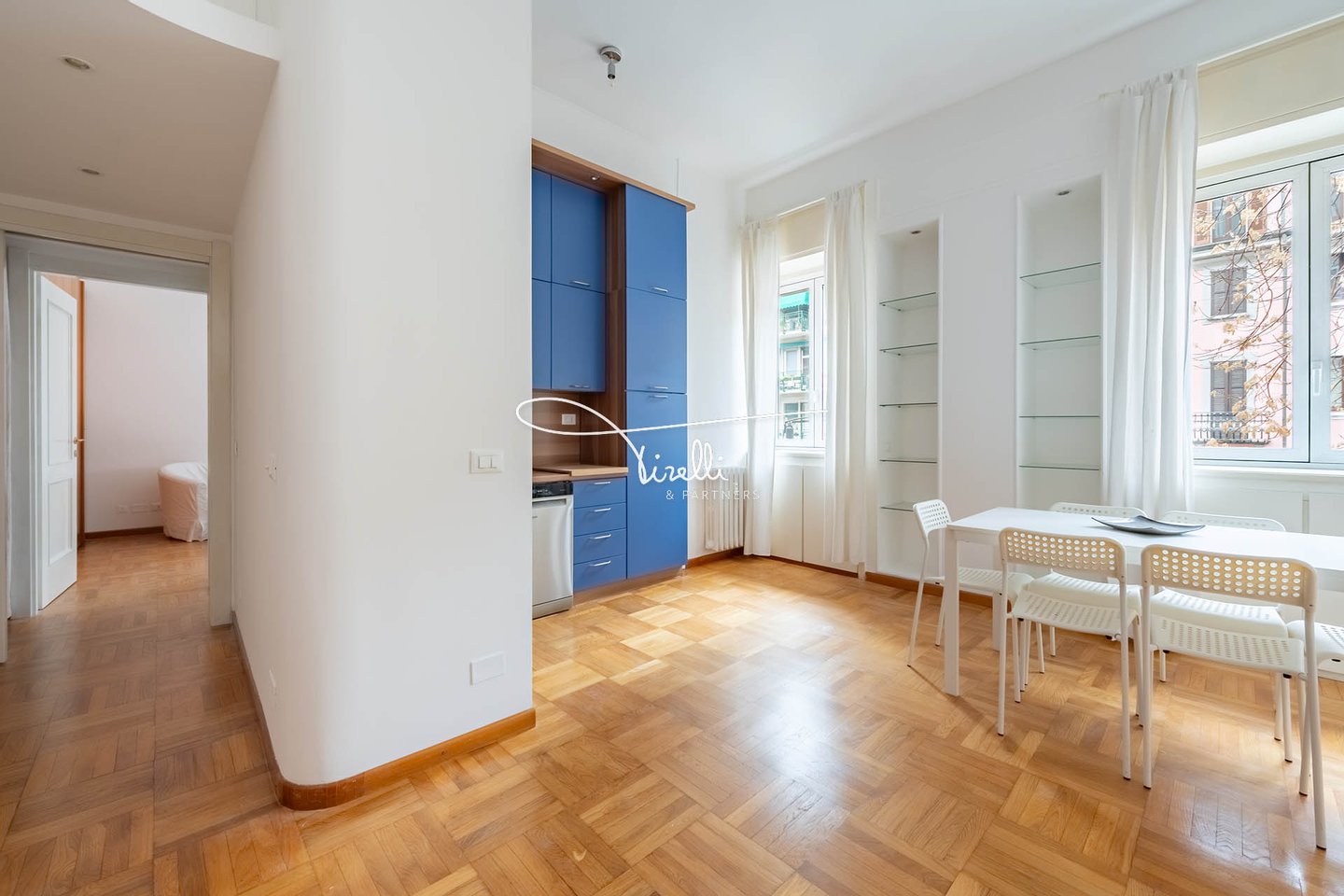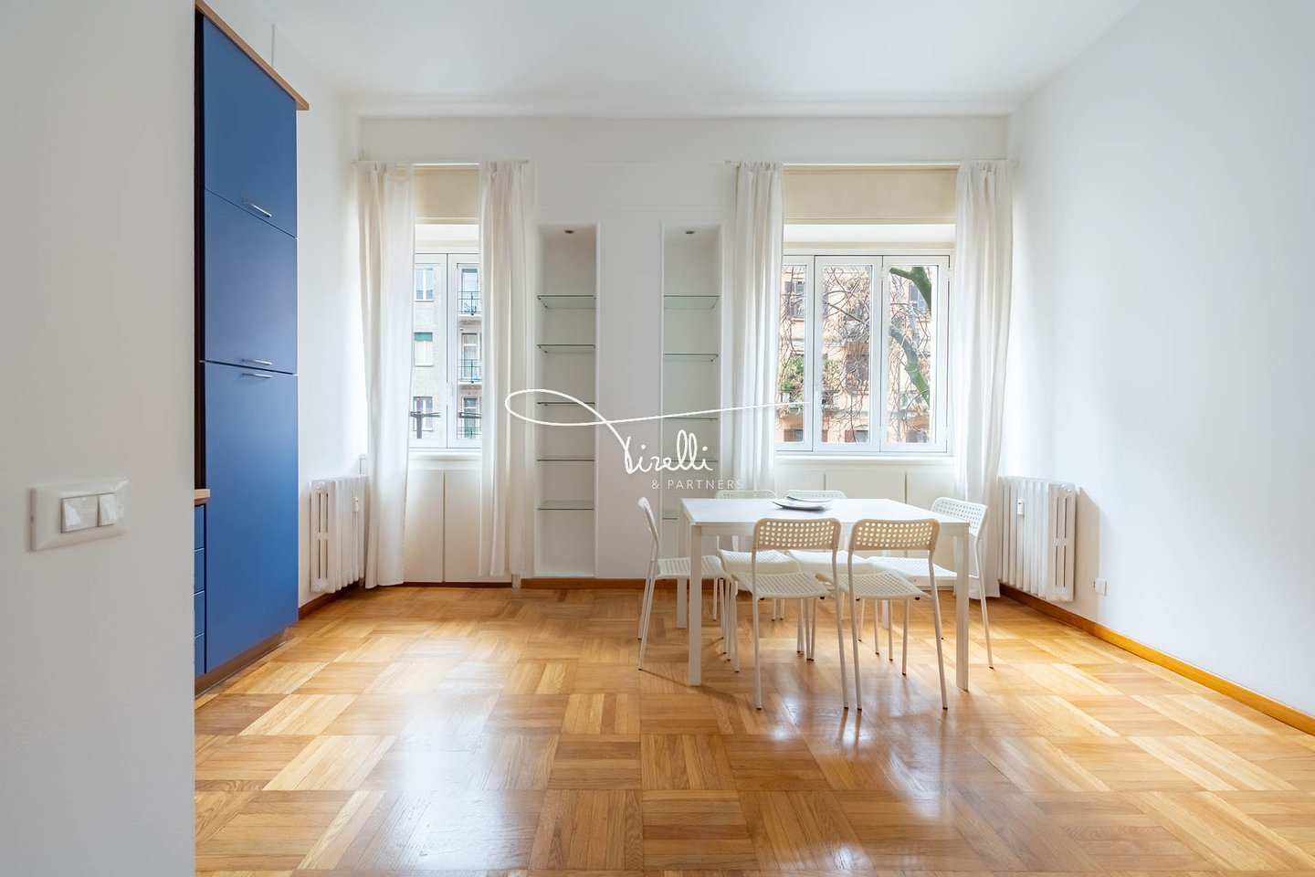I am a small pied-à-terre in the heart of the city, set in a little square along the avenue where, through large windows and high ceilings, I enjoy a privileged view of neighborhood life. Every space has been designed to offer you maximum comfort: a spacious living area with an open kitchen blends seamlessly with custom-made furnishings and full-height wardrobes, all conceived to ensure impeccable order. I have one bedroom, and my windowed bathroom is filled with natural light and ventilation. If you wish, you can enjoy the rare privilege of purchasing separately a garage just a few meters from the entrance: I will become the perfect blend of Milan’s indescribable charm and the utmost urban practicality. Come see me. Don't let me run away with others!
