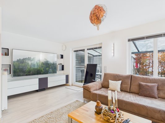 Großzügiger Wohnbereich mit bodentiefen Fenstern