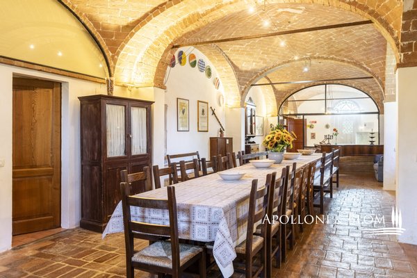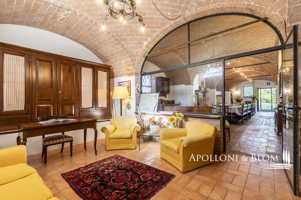 Authentischer Landsitz mit Dependance, Klimaanlage, Elektroautosäule, Reservat für weiße Trüffel, südlich von Siena zu verkaufen. Nur zehn Minuten südlich von Siena, in strategischer Lage zu den Crete Senesi, Montalcino und dem Val d'Orcia, befindet sich dieses Landhaus aus der Mitte des 18. Jahrhunderts, das einst als Jagdresidenz einer sienesischen Adelsfamilie diente, in einer interessanten Umgebung mit freiem Blick auf die toskanische Landschaft, die von Zypressenreihen eingerahmt wird. Der Komplex erstreckt sich über ca. 800 Quadratmeter und besteht aus einer Villa, die um einen mit Naturstein gepflasterten Innenhof angeordnet ist, flankiert von einer eleganten ehemaligen Scheune mit drei Bögen, die fachmännisch restauriert wurde, und einem unabhängigen Nebengebäude auf zwei Ebenen. Im Erdgeschoss der Villa sind die eindrucksvollen Terrakotta-Gewölbe erhalten, während im Obergeschoss freiliegende Holzbalken zu sehen sind. Die Zimmer sind derzeit in fünf unabhängigen Wohnungen mit jeweils einem oder zwei Zimmern innerhalb des Hauptgebäudes untergebracht, hinzu kommt das Gästehaus mit zwei weiteren Zimmern. Nebenräume und ein alter Holzofen, der von der ländlichen Vergangenheit zeugt, vervollständigen das Anwesen. Das Anwesen verfügt über eine Agrotourismus-Lizenz für 20 Gäste und hat einen internationalen Kundenstamm, der wöchentlich etwa 12.000 USD erwirtschaftet. Die Residenz ist mit einer 20-kW-Photovoltaikanlage zur Energie- und Warmwassererzeugung, einer Klimaanlage und einer Aufladestation für Elektroautos ausgestattet, wobei der Schwerpunkt auf Energieeffizienz und Innovation liegt. Im Außenbereich befindet sich ein gepflegter Park mit Rasenflächen, einem Volleyballfeld und einem Panoramaschwimmbad mit beheiztem Wasser, Jacuzzi und Solarium. Auf den 4 Hektar Land befinden sich biologisch bewirtschaftete Ackerflächen und Wälder, die durch ein privates Reservat weißer Trüffel, einem echten Schatz der Region Siena, ergänzt werden. Ein Anwesen mit viel Identität und Charme, das landwirtschaftliche Berufung, gehobene Gastfreundschaft und ökologische Nachhaltigkeit miteinander verbindet, nur wenige Kilometer von einem der bedeutendsten Kulturzentren der Toskana entfernt.