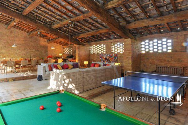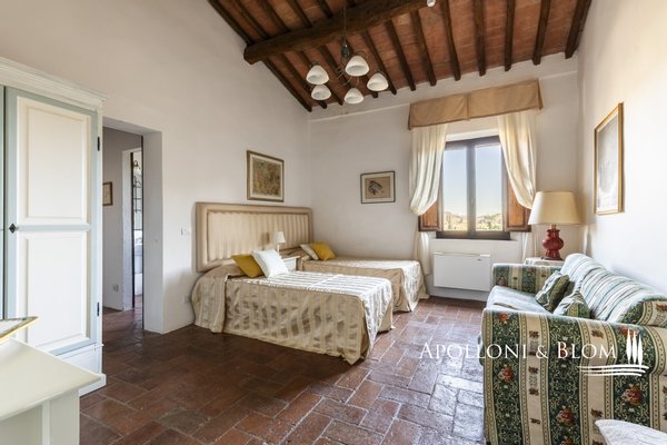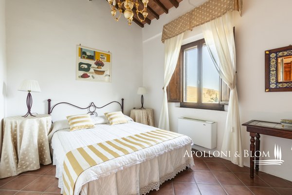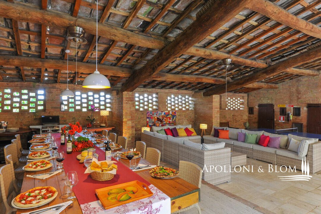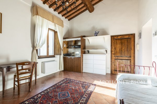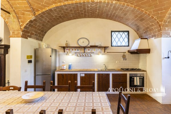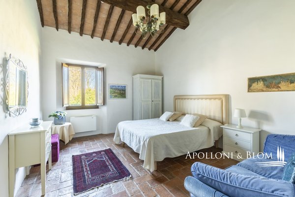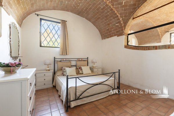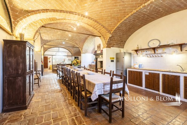 Authentischer Landsitz mit Dependance, Klimaanlage, Elektroautosäule, Reservat für weiße Trüffel, südlich von Siena zu verkaufen. Nur zehn Minuten südlich von Siena, in strategischer Lage zu den Crete Senesi, Montalcino und dem Val d'Orcia, befindet sich dieses Landhaus aus der Mitte des 18. Jahrhunderts, das einst als Jagdresidenz einer sienesischen Adelsfamilie diente, in einer interessanten Umgebung mit freiem Blick auf die toskanische Landschaft, die von Zypressenreihen eingerahmt wird. Der Komplex erstreckt sich über ca. 800 Quadratmeter und besteht aus einer Villa, die um einen mit Naturstein gepflasterten Innenhof angeordnet ist, flankiert von einer eleganten ehemaligen Scheune mit drei Bögen, die fachmännisch restauriert wurde, und einem unabhängigen Nebengebäude auf zwei Ebenen. Im Erdgeschoss der Villa sind die eindrucksvollen Terrakotta-Gewölbe erhalten, während im Obergeschoss freiliegende Holzbalken zu sehen sind. Die Zimmer sind derzeit in fünf unabhängigen Wohnungen mit jeweils einem oder zwei Zimmern innerhalb des Hauptgebäudes untergebracht, hinzu kommt das Gästehaus mit zwei weiteren Zimmern. Nebenräume und ein alter Holzofen, der von der ländlichen Vergangenheit zeugt, vervollständigen das Anwesen. Das Anwesen verfügt über eine Agrotourismus-Lizenz für 20 Gäste und hat einen internationalen Kundenstamm, der wöchentlich etwa 12.000 USD erwirtschaftet. Die Residenz ist mit einer 20-kW-Photovoltaikanlage zur Energie- und Warmwassererzeugung, einer Klimaanlage und einer Aufladestation für Elektroautos ausgestattet, wobei der Schwerpunkt auf Energieeffizienz und Innovation liegt. Im Außenbereich befindet sich ein gepflegter Park mit Rasenflächen, einem Volleyballfeld und einem Panoramaschwimmbad mit beheiztem Wasser, Jacuzzi und Solarium. Auf den 4 Hektar Land befinden sich biologisch bewirtschaftete Ackerflächen und Wälder, die durch ein privates Reservat weißer Trüffel, einem echten Schatz der Region Siena, ergänzt werden. Ein Anwesen mit viel Identität und Charme, das landwirtschaftliche Berufung, gehobene Gastfreundschaft und ökologische Nachhaltigkeit miteinander verbindet, nur wenige Kilometer von einem der bedeutendsten Kulturzentren der Toskana entfernt.