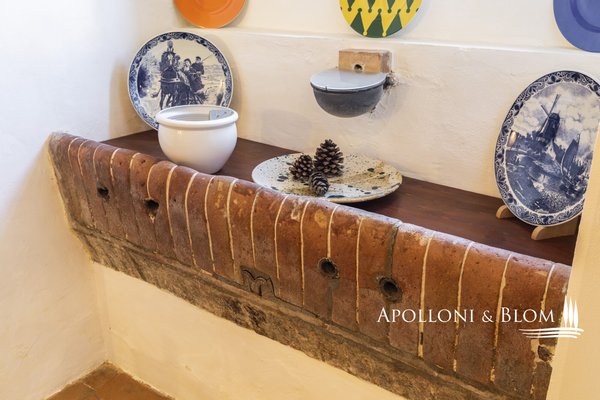 2. alte Hütte mit drei Bögen, auf einer Ebene von 115 m², vor dem Bauernhaus, mit Sommerwohnbereich und Travertinplattenböden + Sonnenkollektoren auf dem Dach, ein Raum mit altem Holzofen, 1 Badezimmer für das Personal, 2 Räume, die als technischer Raum mit Heizkessel und technischen Anlagen genutzt werden; 1 Holzanbau, der als Lager für Gartengeräte genutzt wird