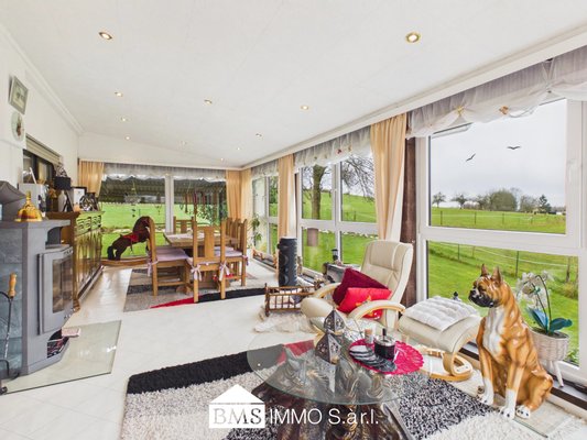 - Wintergarten mit offenem Kamin und Terrasse
