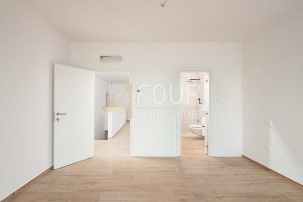 Im Erdgeschoss befinden sich drei elegante Schlafzimmer, jedes mit eigenem Badezimmer. Der nach Süden ausgerichtete Balkon bietet einen atemberaubenden Panoramablick auf das Meer und die Kvarner-Inseln.