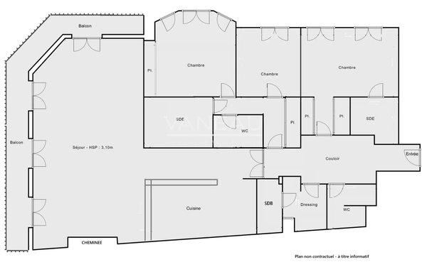 We offer you an apartment on the 5th floor with elevator in a beautiful Art Deco condominium of standing secure. This four-room apartment features large volumes and high ceilings, with a surface area of 157 m² Carrez.