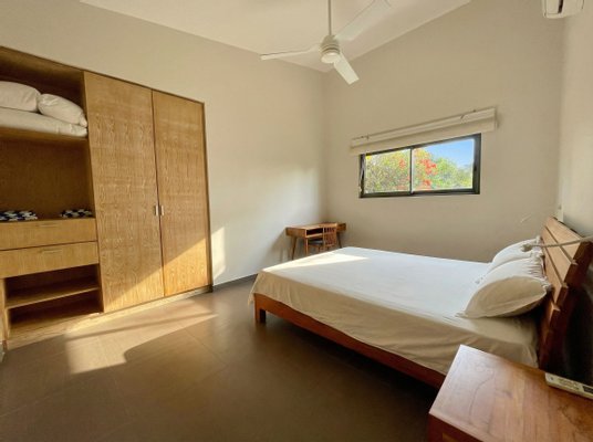 Die Schlafzimmer sind hell und durchdacht gestaltet. Die Master Suite verfügt über einen begehbaren Ankleidebereich und ein eigenes Bad, was einen privaten Rückzugsort im Haus bietet. Alle Schlafzimmer sowie der Hauptwohnbereich sind klimatisiert.