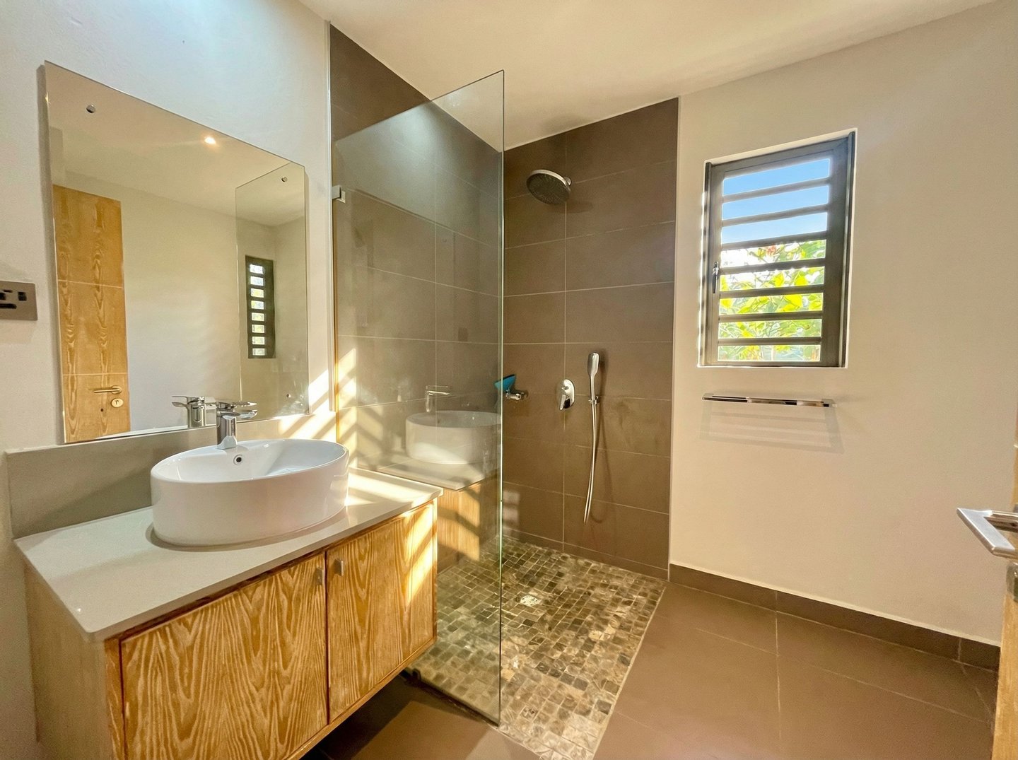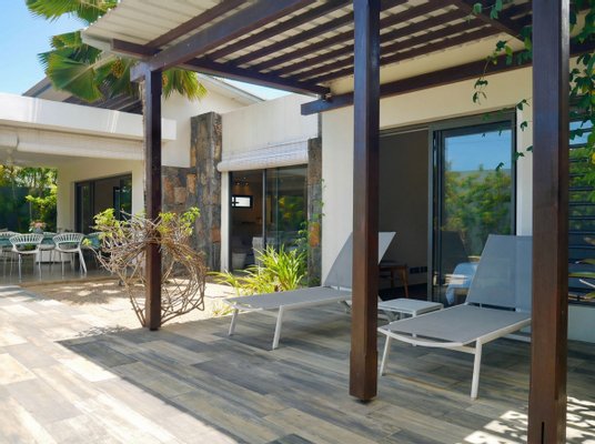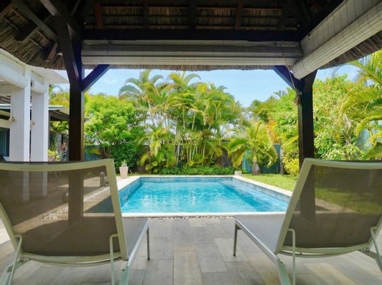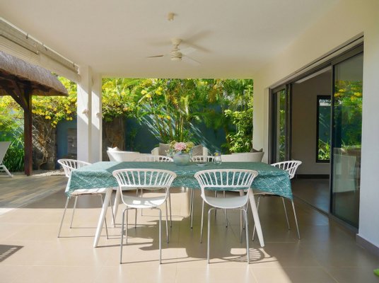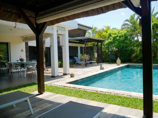 Die Villa befindet sich in sehr gutem Zustand und ermöglicht eine sofortige Nutzung ohne weitere Investitionen. Es wird voll möbliert verkauft, mit sorgfältig ausgewählten Stücken, die lokal auf Mauritius bezogen werden und einen zeitgenössischen tropischen Stil widerspiegeln.