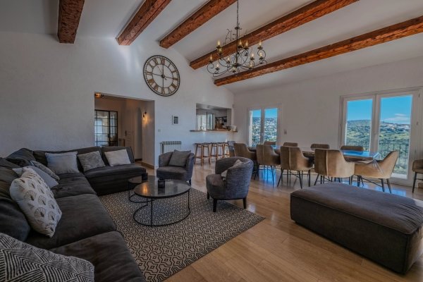 It comprises 6 bedrooms, 4 bathrooms and a large, bright living room opening onto the terrace.